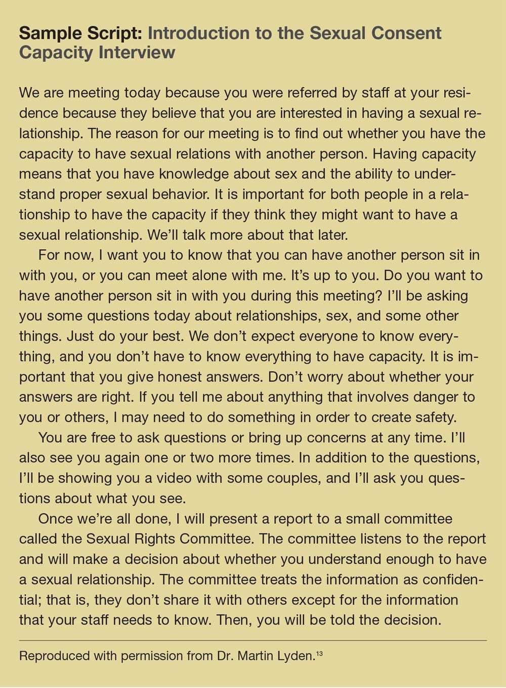 Sample Script: Introduction to the Sexual Consent Capacity Interview